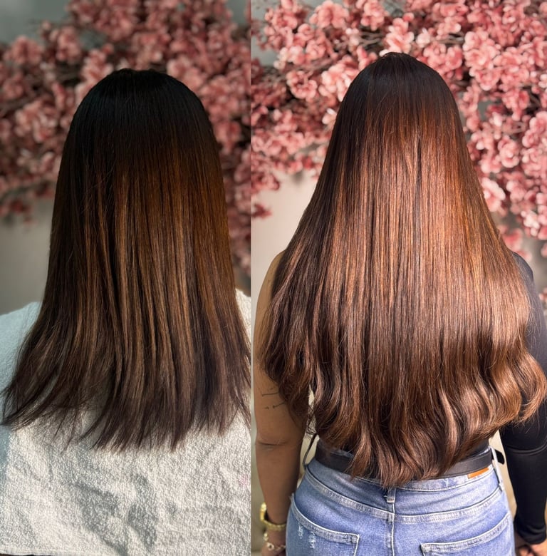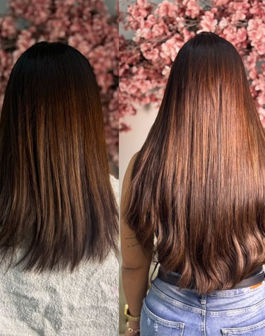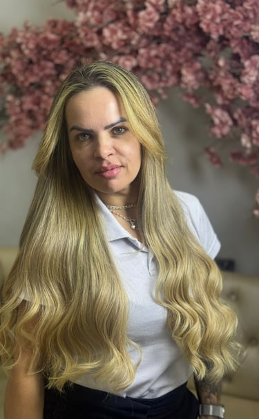 No nosso salão, cada fio é tratado com cuidado, usando técnicas como fita adesiva, microcápsulas e ponto americano para um resultado natural e duradouro.